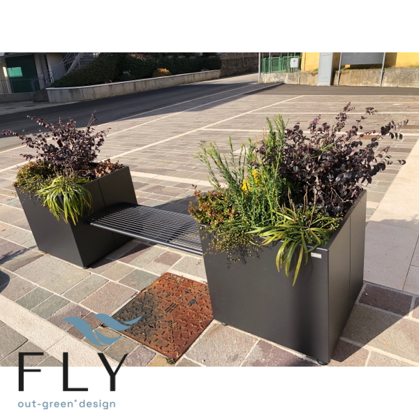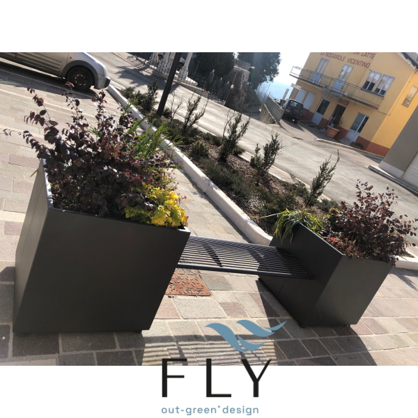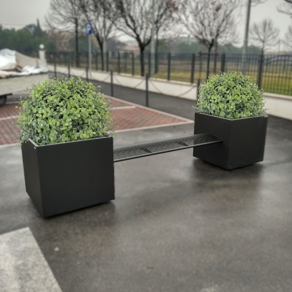 Čelično sjedalo izrađeno od vučenog čelika i 2 cjevasta, zavarena na dva bočna nosača i 2 oblikovana središnja nosača. Sjedalo je pričvršćeno na žardinijere vijcima.