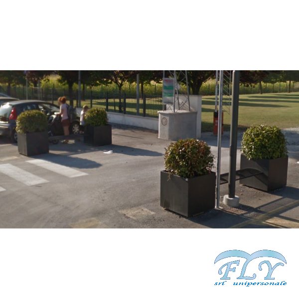 Bočna sadilica dim. 70x70x70 cm izrađena od laserski rezanog i savijenog lima. Gornji dio se dobiva iz preklopa lima i stvara okvir. Limeno dno je učvršćeno za zidove varenjem, nadalje u donjem dijelu je zavaren kvadrat od ploče za podizanje cjeline.