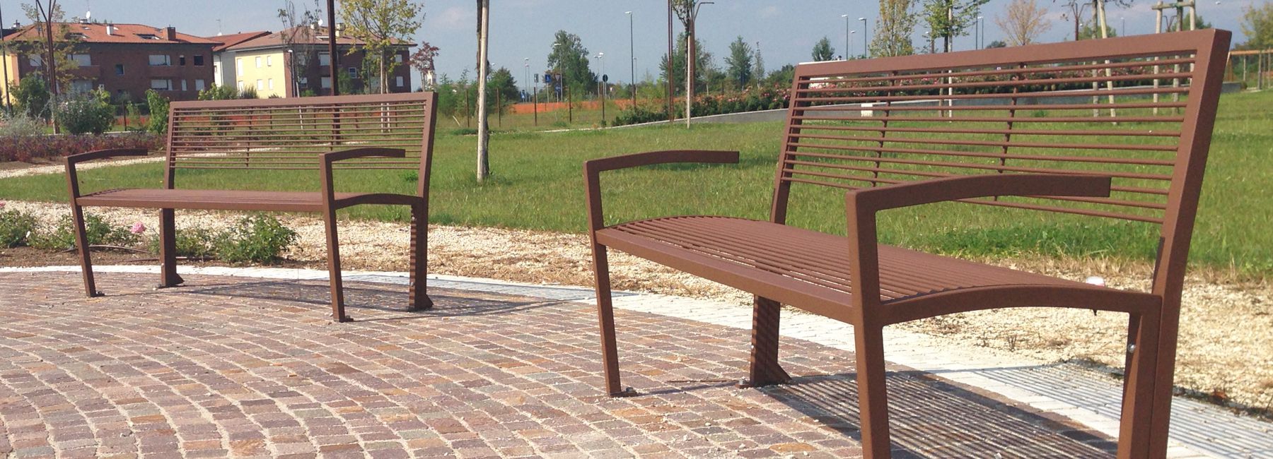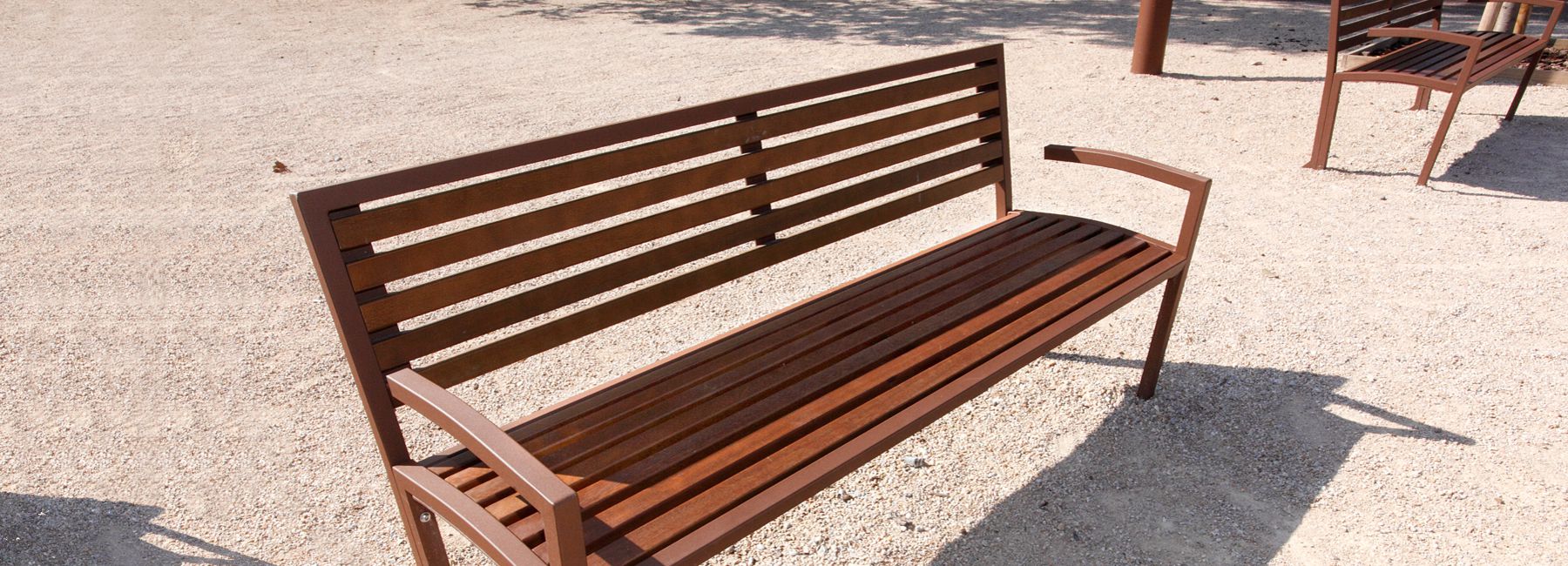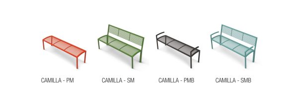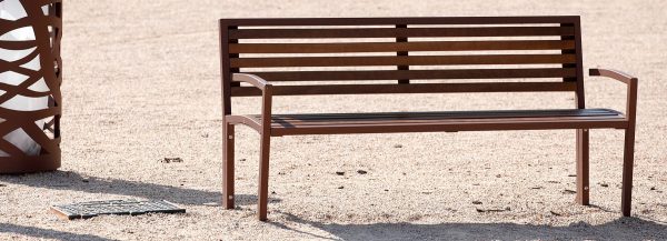Klupa sa ili bez naslona, izrađena od zakrivljene i zavarene čelične cijevi, sa ili bez naslona za ruke.