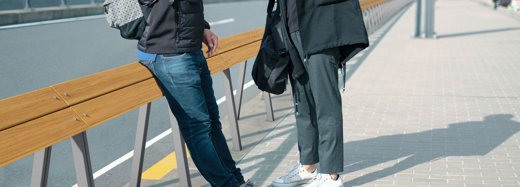 Ishijalno sjedalo koje se sastoji od dva cijevna čelična nosača i sjedala s okvirom od presavijenog lima i letvicama od tvrdog drva ili toplinski obrađene borovine.