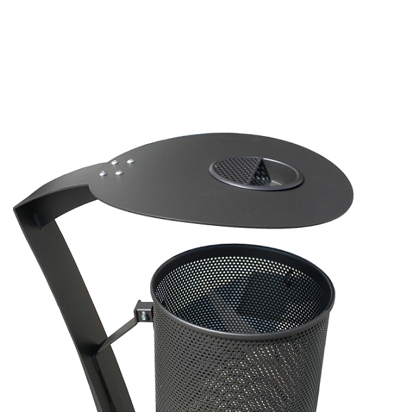 Košara za otpad od pocinčanog i obojanog čelika, na zavrtnje, s pepeljarom na poklopcu.