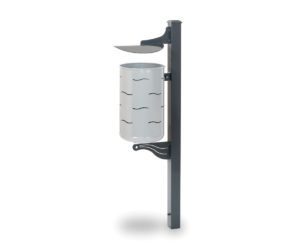 Košara od lakiranog galvaniziranog perforiranog čeličnog lima, cilindričnog oblika, s malim kvadratnim rupama. Završno pečenje na 180°. Opremljen je okruglim krovnim krovom od prešanog čeličnog lima. Nosi ga vruće pocinčani okrugli stup od čeličnih cijevi Ø 60 mm i visine 120 cm za sustav sidrenja u tlu. Sustav za pražnjenje otkvačivanjem i naginjanjem uz pomoć imbus ključa, isporučen.