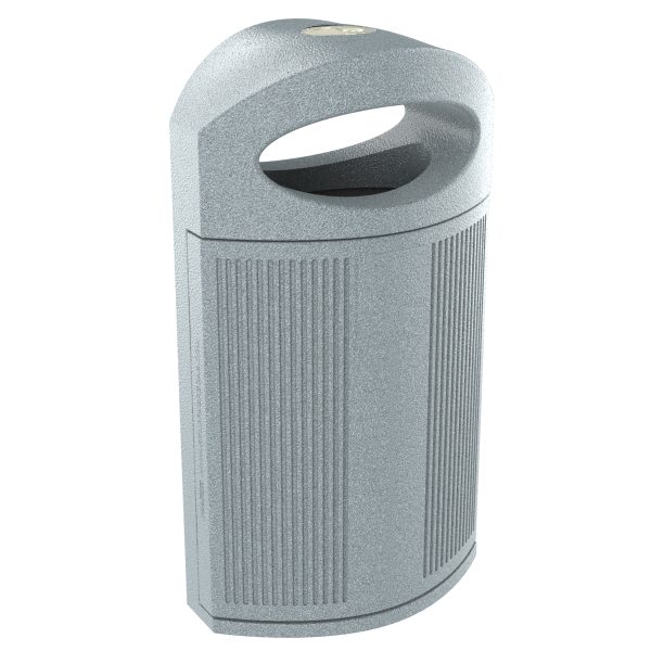 Koš za smeće Ibiza Urban, izrađen od termoplastičnog materijala, izrađenog iz plastike prikupljene u gradskom otpadu, s UV zaštitom, sustavom za zatvaranje i pepeljarom na vrhu.