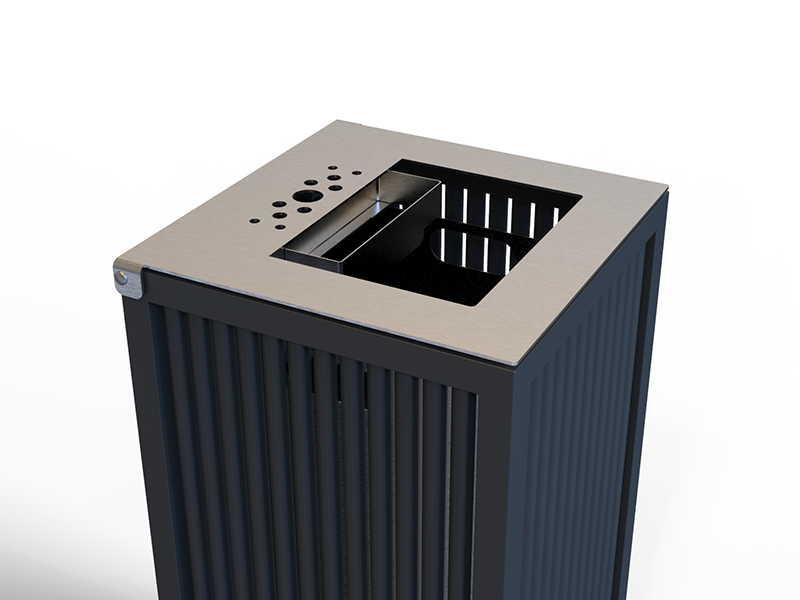 Inoplex kanta opremljena je funkcionalnom pepeljarom koja je uvijek izrađena od poliranog nehrđajućeg čelika te umetkom koji omogućuje jednostavno i brzo pražnjenje kante.