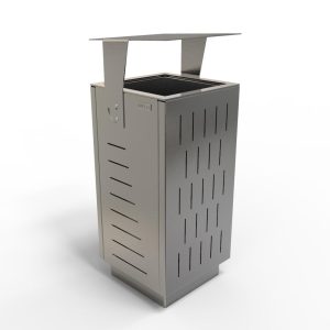Kanta za otpatke KA.12.02.01 klasičan je, minimalistički i funkcionalan proizvod izrađen u potpunosti od čvrstog i na štetne utjecaje vanjskih čimbenika otpornog nehrđajućeg čelika.