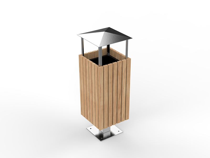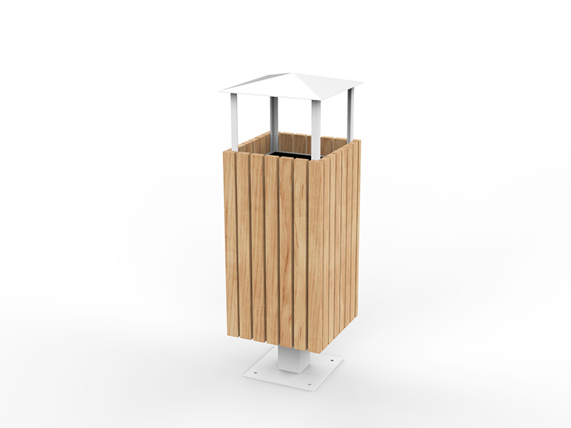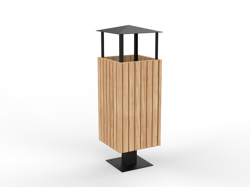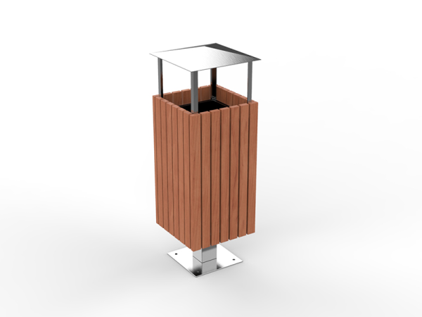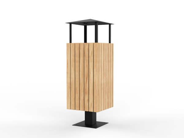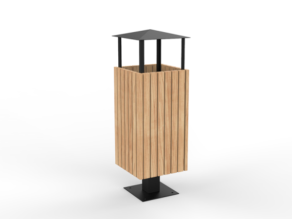 Ova kanta za smeće od čelika i drva s krovom kombinacija je elegancije i funkcionalnosti. Čelična konstrukcija, dostupna u raznim RAL bojama, jamči trajnost i otpornost na vremenske uvjete. Krov štiti od kiše, a drveni elementi od bora, johe ili sapeli drva dodaju toplinu i prirodni šarm, što ovu kantu za smeće čini idealnim izborom za svaki urbani prostor.
