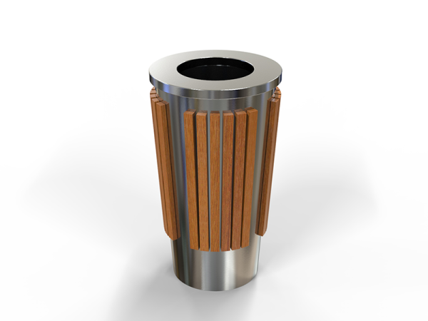 Konstrukcija kante za otpatke KA.13.04.01 u cijelosti je izrađena od poliranog nehrđajućeg čelika. S vanjske strane nalaze se ukrasni drveni elementi koji mogu biti izrađeni od vrsta domaćeg ili egzotičnog drva koje nudi Inoplex.