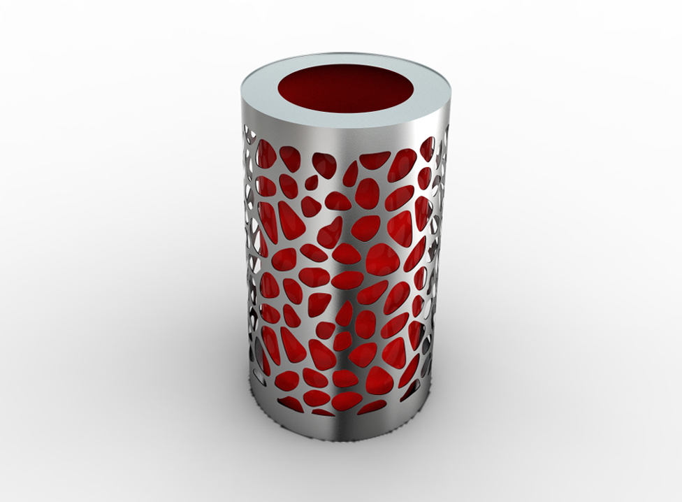 Kanta za otpatke KA.15.01 iznimno je prostran model čija je konstrukcija izrađena od nehrđajućeg čelika, dok je uložak izrađen od crnog čelika, pocinčan i praškasto lakiran u bilo koju boju iz RAL palete, što omogućuje boju proizvoda. prilagoditi svakom rasporedu prostora.