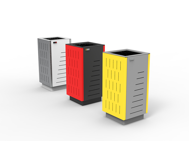 Kanta za otpatke KA.19.07a čvrsti je model serije Pure koju odlikuje besprijekorna, moderna estetika. Zahvaljujući čeličnoj konstrukciji, koš će biti savršen kao element uličnog namještaja u vanjskim urbanim područjima. Može se koristiti kao oprema za trgovačke centre, moderna stambena naselja i uredske prostore.