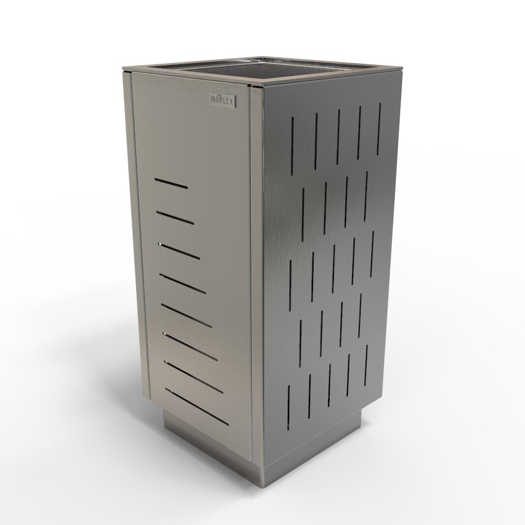 Ova čelična kanta za smeće sinonim je za izdržljivost i otpornost na koroziju. Izrađena od nehrđajućeg čelika ili plastificirana, pruža otpornost na vremenske uvjete i mehanička oštećenja. Njena čvrsta konstrukcija jamči dugotrajnu upotrebu bez ikakvih znakova korozije.