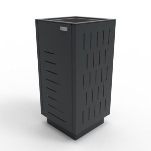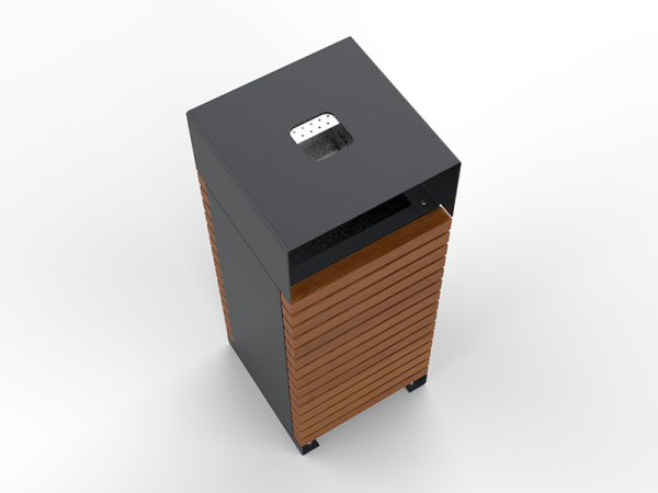 Ova gradska kanta za smeće kombinacija je izdržljivosti čelika i prirodnog šarma drva. Čvrsta čelična konstrukcija, dostupna u raznim RAL bojama, pruža otpornost na vremenske uvjete, a krov štiti od kiše. Drveni detalji od bora, johe ili sapeli drva dodaju toplinu i eleganciju, što ovu kantu za smeće čini idealnim izborom za parkove, trgove i ulice.