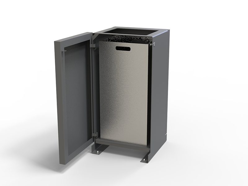 Kanta KA.20.05.02 je minimalistička konstrukcija koja će se prilagoditi svakom urbanom i parkovnom prostoru gradova i mjesta. Koš ima umetak od pocinčanog čelika, koji se uklanja nakon otvaranja prednjih vrata, koja se zaključavaju.