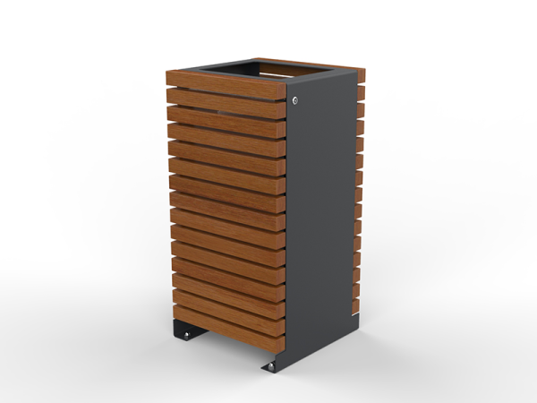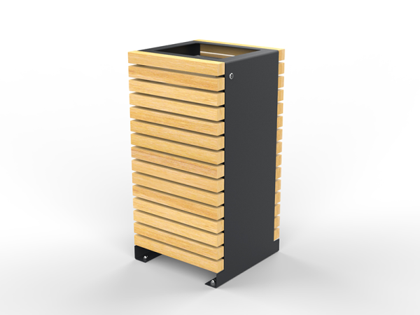 Ova gradska kanta za smeće kombinacija je funkcionalnosti i estetike. Čelična konstrukcija, dostupna u raznim RAL bojama, pruža trajnost, a drveni detalji od bora, johe ili sapeli drva dodaju prirodni šarm. Idealna za parkove, trgove i ulice.