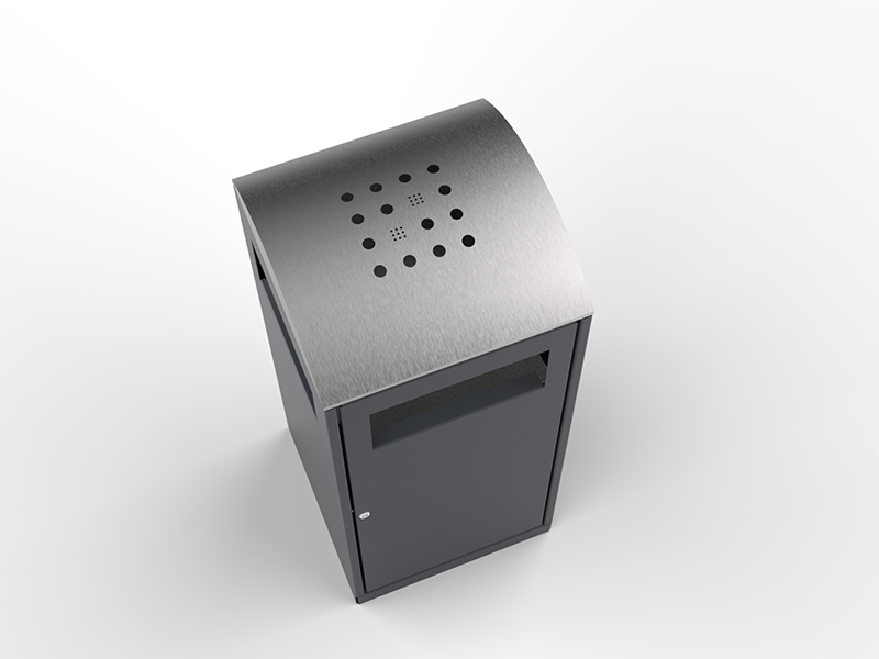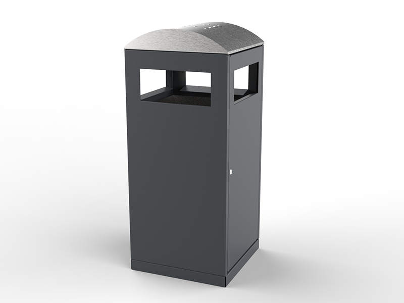 Ova čelična kanta za smeće s krovom kombinacija je modernog dizajna, otpornosti na vremenske uvjete i jednostavnog održavanja. Izrađena od nehrđajućeg čelika ili plastificirana, pruža estetski izgled i trajnost. Krov štiti od kiše, snijega i sunca, a glatka površina olakšava čišćenje i održavanje. Čvrsta čelična konstrukcija jamči dugotrajnu upotrebu bez potrebe za čestom zamjenom.