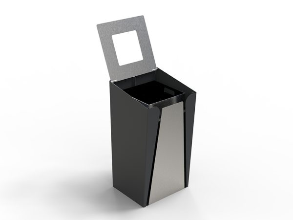 Kanta za otpatke KA.21.03 u potpunosti je izrađena od čelika. Njezin dizajn omogućuje korištenje dvije boje ili dva druga materijala (npr. nehrđajući čelik i crni čelik) u jednom proizvodu. To vam daje praktično neograničene mogućnosti sastavljanja. Košara dodatno može imati laserski izrezan logo, natpis ili piktogram na prednjoj ploči.