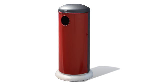 Karakterizira ga cilindrični oblik; izrađen je od pocinčanog lima. Bočno otvaranje “u obliku knjige”, pomoću šarke koja omogućuje rotaciju polovice konstrukcije. Otvorni dio opremljen je: prstenom za držač vrećica od pocinčanog čelika i bravom s jednim ključem. Za ubacivanje otpada, otvorni dio opremljen je kružnim otvorom s rubom protiv rezanja. Oblikovani, fiksni poklopac, izrađen od pocinčanog lima, s rubom protiv rezanja na kraju. Baza kante izrađena je od bijelog betona, s efektom kamena.