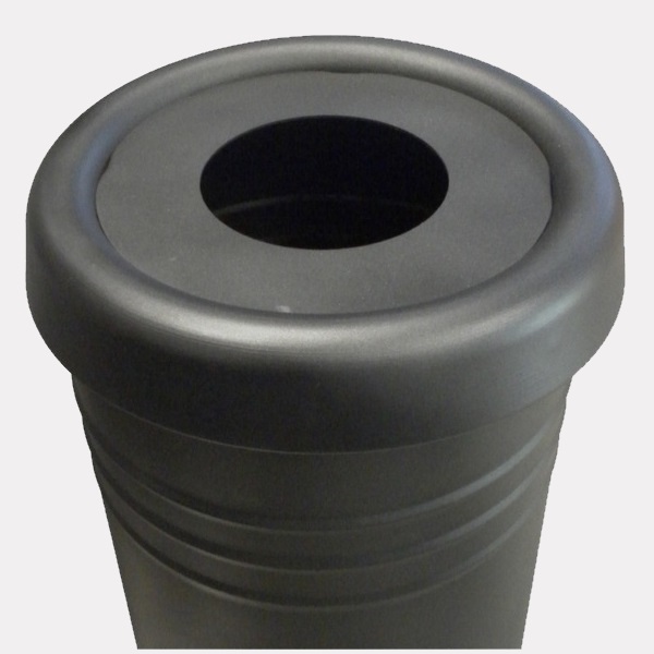 Palio kanta za otpatke sa smanjenom rupom. Cilindrična posuda s rebrima. Gornji dio je obrubljen elektro-zavarenim prstenom, dok je donji dio zatvoren zaobljenim dnom i perforiranim u sredini radi lakšeg odvoda kišnice ili povremenog čišćenja. Gornji prsten se može otvoriti i na jednoj je strani šarkama, s funkcijom držača vrećice i redukcije Ø140 mm. Posuda je poduprta cijevi s rupama za pričvršćivanje na pod. Svi metalni dijelovi su pocinčani i obojeni termoreaktivnim poliesterskim prahom u različitim bojama.