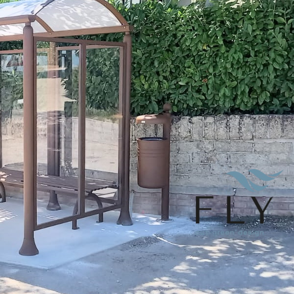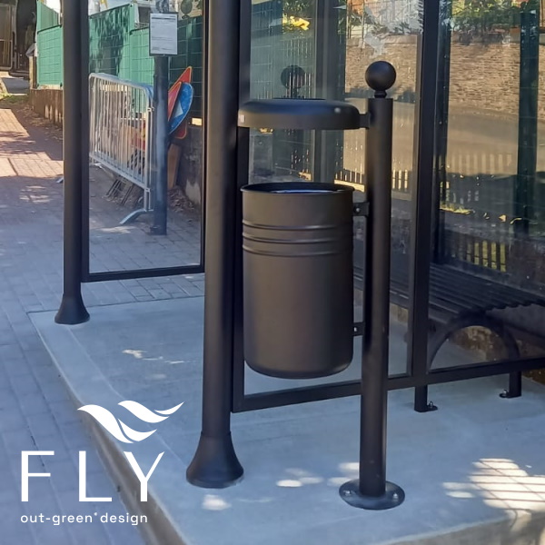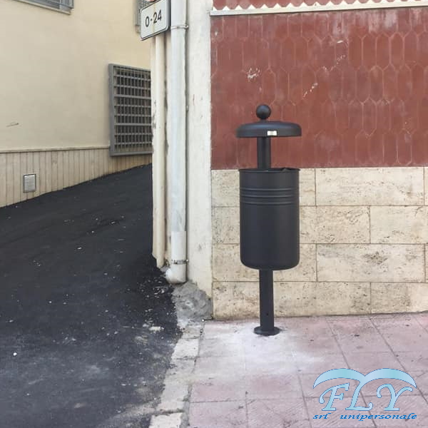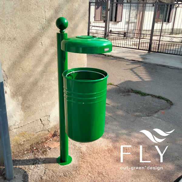 Koš za otpatke sastoji se od cilindričnog spremnika. Gornji dio je obrubljen elektrozavarenim prstenom, dok je donji dio zatvoren podnožjem odgovarajuće perforirano za eventualnu odvodnju kišnice ili povremeno čišćenje. Isporučuje se u kompletu s čeličnim držačem za vrećice. Kontejner je fiksiran na potporni stup u čeličnoj cijevi, s gornje strane zatvoren kao ukras čeličnom kuglom, dok je donji dio opremljen prirubnicom namijenjenom za pričvršćivanje na tlo pomoću sidara. Opremljen je poklopcem pričvršćenim za stup za zaštitu od atmosferskih utjecaja i pepeljarom koja se može skinuti. Koš za otpatke je pocinčan i obojan termoreaktivnim poliesterskim prahom u raznim bojama. Vijci su od nehrđajućeg čelika. Na zahtjev se može isporučiti s nosačem za sidrenje, tj. s produžetkom i ukrasnom kružnom bazom.