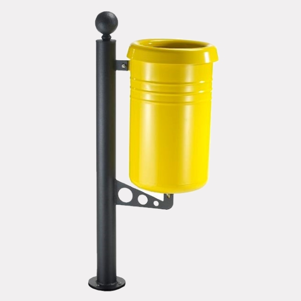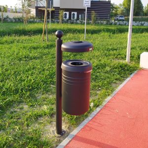Pocinčani i obojeni čelični stupni spremnik s ukrasom. U kompletu s prstenom za držač vrećice.