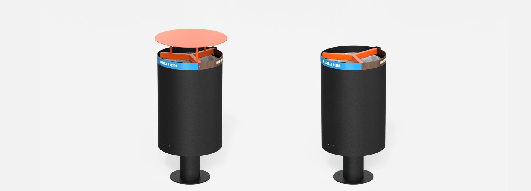 Kanta za razvrstavanje otpada sa i bez poklopca, izrađena od čeličnog lima u obliku cilindra sa središnjim nosačem od čeličnih cijevi.