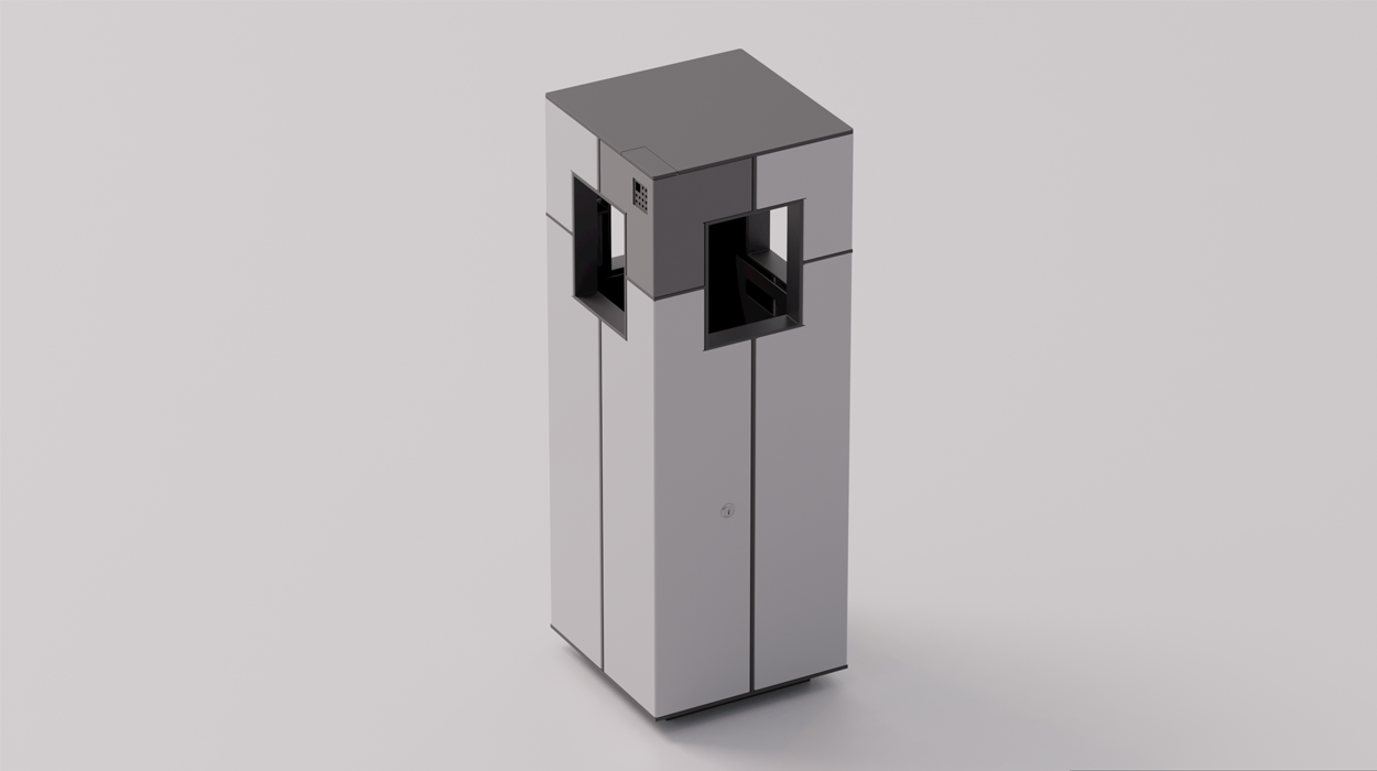 Kako bi se prilagodila različitim estetskim potrebama, kanta je dostupna u osnovnoj završnoj obradi “antracit siva RAL 7016” za konstrukciju, “agatno siva RAL 7038” za panele i “mišje siva RAL 7005” za pepeljaru. Nadalje, na zahtjev je moguće zatražiti prilagođene boje i završne obrade kako bi se kanta savršeno integrirala u okolni prostor. Konstrukcija, izrađena od pocinčanog čelika i obojena termoreaktivnim prahovima, jamči visoku otpornost na atmosferske utjecaje i dugi vijek trajanja.