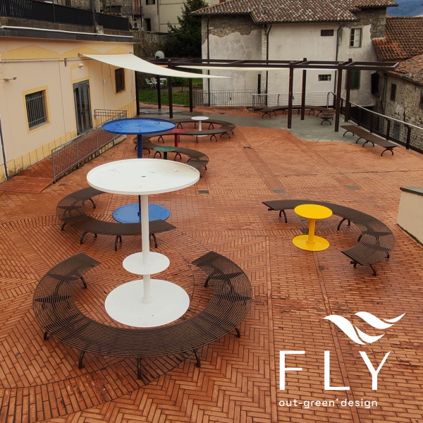 Kutna klupa Rest izrađena od pocinčane i lakirane čelične konstrukcije. Modularna, može se postaviti jedna do druge kako bi se stvorio cijeli krug ili serpentina.