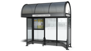 Nadstrešnica Alessandra s bočnim stijenkama za autobusne stanice ima konzolni dizajn koji nudi iznimnu izdržljivost i funkcionalnost.