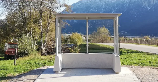 Nadstrešnica mod. MAGNUM EVOLUTION S, sastoji se od baze od bijelog granita. Nosiva konstrukcija s tri obodna panela, raspoređena na tri strane, i krovom. Nadstrešnica je opremljena sustavom niveliranja. Na zahtjev je moguće izraditi informativni znak i logotipe na prozorima.