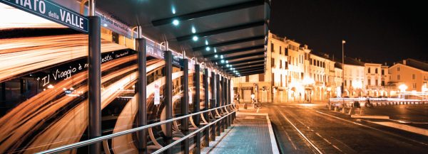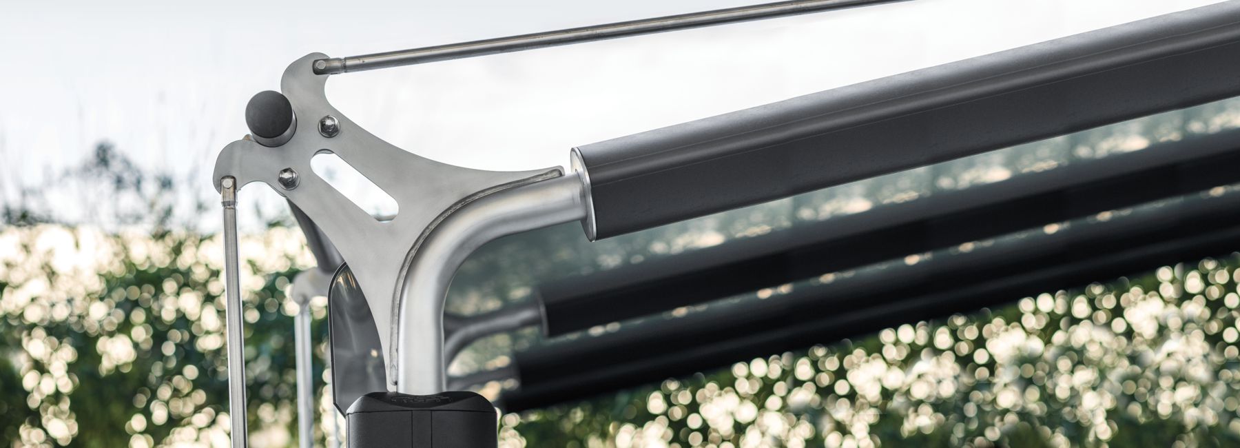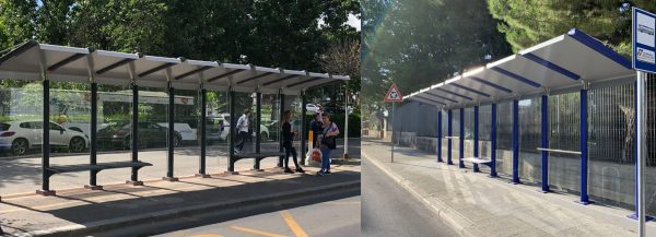 Modularna nadstrešnica, dostupna u različitim konfiguracijama s dva, tri, četiri ili pet modula, koja se sastoji od niza stupova od ekstrudiranog aluminija s unutarnjom jezgrom od cjevastog čelika i ravnim poklopcem od kompozitnog aluminija.