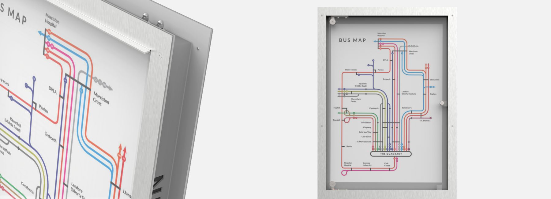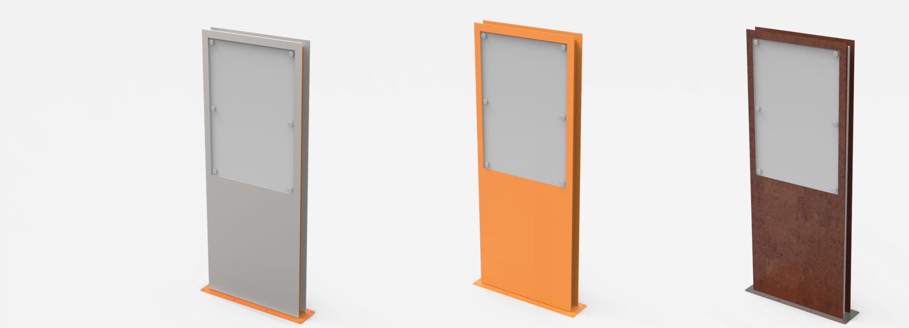 Dvostrani totem s nosivom konstrukcijom od C-profilnog čeličnog lima i pločama za ispunu mehanički pričvršćenim na konstrukciju.