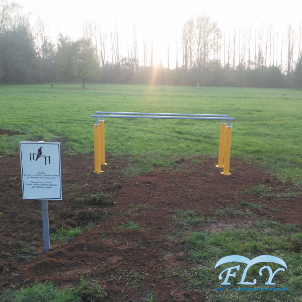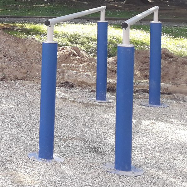 Fitnes na otvorenom GHF008 – paralelne prečke. Struktura sastavljena od nosača i poprečnih dijelova od pocinčanog i obojenog cjevastog čelika.