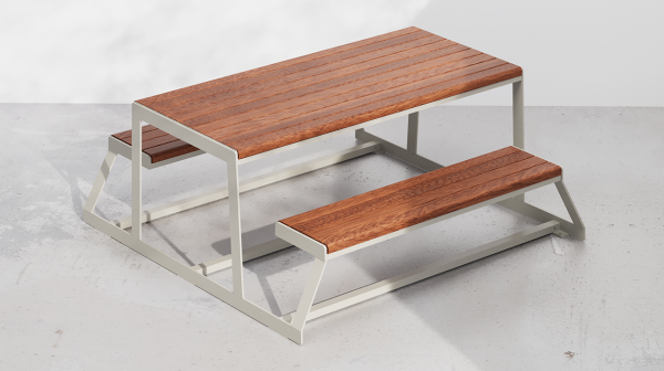 Stol za piknik nudi cjelovito rješenje za vanjske prostore, a sastoji se od stola i dvije klupe. Zahvaljujući čistim i definiranim linijama, otporan i funkcionalan za vanjske prostore, ovaj stol se dobro uklapa u moderna urbana okruženja.