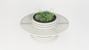 Kvadratni dizajn, sastavljen od 4 stupa od pocinčane čelične kvadratne cijevi, s ukrasnim elementom na vrhu; svaki pojedinačni stup opremljen je osnovnom pločom od pocinčanog čelika. Spojne prečke od pocinčane čelične kvadratne cijevi; perimetralna obloga od pocinčanog lima s naizmjeničnim kružnim rupama. Zidovi su izvana zaštićeni prečkama od pocinčane čelične kvadratne cijevi ukrašenim ukrasnim elementom u sredini. Unutarnja ladica izrađena od pocinčanog lima.