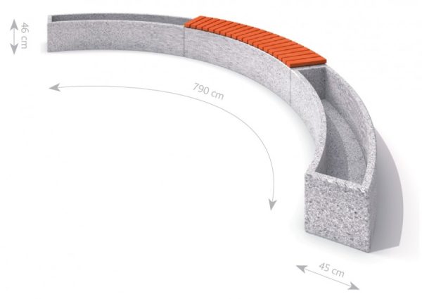 - 2 lučne žardinjere KT-05-CR-002 izrađene od betona ojačanog čelikom i klupa KT-01-CR-004 na kružnoj osnovi (promjera cca. 6 m).