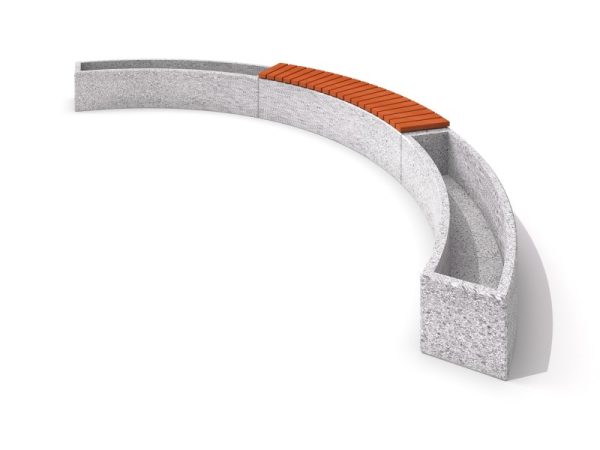 Klupa od ispranog betona dostupna u 7 boja. Sjedalo je izrađeno od drveta. Klupa u obliku luka. Sjedalo je izrađeno od drveta. Klupa je dobar izbor za udoban i lijep urbani namještaj za park, estetiku itd. Konstrukcija ove klupe ostavlja dojam laganog i estetskog namještaja, najboljeg za urbani prostor.
