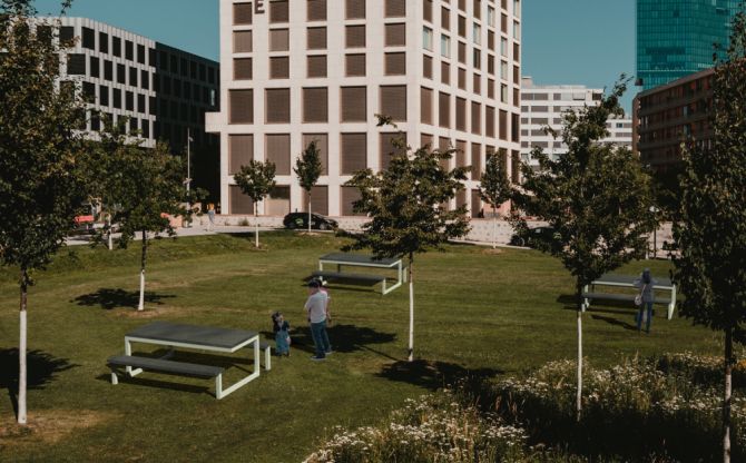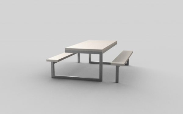 Ploča stola i klupa izrađena je od SMC betona, a konstrukcija je od čelika.