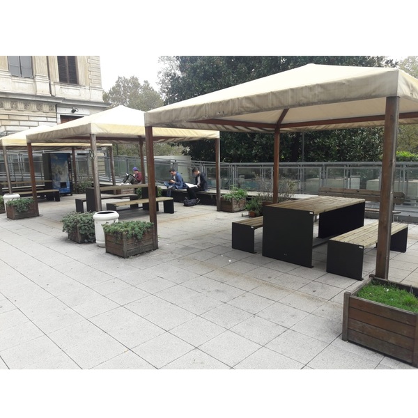 Set piknik Hamburg bez naslona, koji se sastoji od stola + 2 ravne klupe, strukture od pocinčanog i lakiranog čelika, sjedala i ploča stola od plemenitog drva ili nordijskog bora.