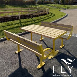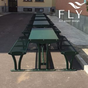 Top Class set s drvenim sjedalima i stolom. Čelična nosiva konstrukcija koja se sastoji od dvije čvrste bočne strane u četvrtastom cijevi na koje su zavarene bazne ploče kako bi se klupa mogla pričvrstiti na tlo ekspanzionim vijcima. Sjedala i ploča stola izrađeni su od letvica u drvu nordijskog bora impregniranog autoklavom ili od kvalitetnog drva. Lamele su pričvršćene na pravokutne cjevaste okvire koji služe za oslonac letvica, a koji su bočno pričvršćeni inox vijcima. Svi metalni dijelovi su pocinčani i obojeni termoreaktivnim poliesterskim prahom. Modularno, postavljanjem jedne garniture do druge moguće je napraviti jednu garnituru željene dužine.
