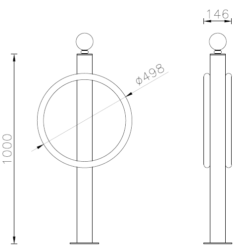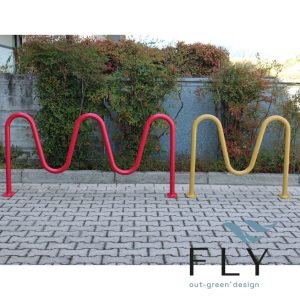 Stalak za bicikle Fox 2 koji se pričvršćuje vijcima. Nosač za bicikl izrađen od čelične cijevi s ukrasnom kovanom čeličnom kuglom iznad. Dva kruga u oblikovanoj okrugloj cijevi zavarena su na cijev kako bi poduprli i osigurali bicikl. Okrugla ploča je zavarena na bazu, opremljena rupama za pričvršćivanje na tlo pomoću ekspanzijskih vijaka. Svi metalni dijelovi su pocinčani i obojeni termoreaktivnim poliesterskim prahom prema raznim RAL bojama. Jednostruki ili na baterije, ugodan i dobro dizajniran kako u funkciji stalka za bicikle tako i za opremanje prostora za parkiranje bicikala.