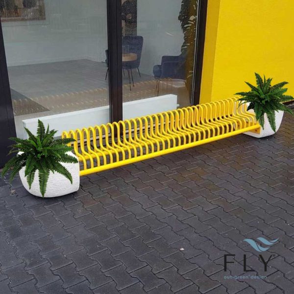 Gamma CLS 1 stalak za bicikle s bočnim kutijama za cvijeće koji se sastoji od nosača cjevastih čeličnih elemenata, odgovarajuće oblikovanih i kruto zavarenih na dvije vodoravne okrugle čelične cijevi. Nosač za bicikl bočno je poduprt dvjema oblikovanim čeličnim pločama zavarenim na cijevi koje imaju rupe za pričvršćivanje na dvije kutije za cvijeće od mramornog pijeska koje djeluju kao bočni nosači. Svi metalni dijelovi su pocinčani i obojeni termoreaktivnim poliesterskim prahom. Vijci su od nehrđajućeg čelika.