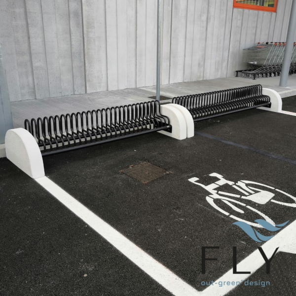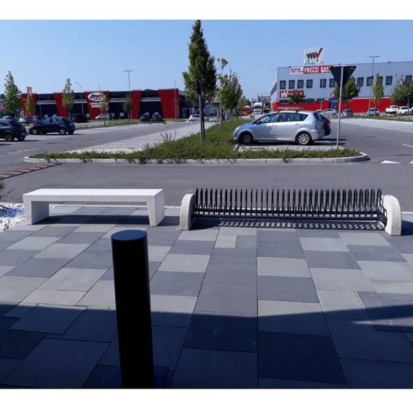 Gamma CLS stalak za bicikle s mramornim stranicama koji se sastoji od nosača cjevastih čeličnih elemenata, odgovarajuće oblikovanih i kruto zavarenih na dvije okrugle vodoravne čelične cijevi. Nosač za bicikl bočno je poduprt dvjema oblikovanim čeličnim pločama zavarenim na cijevi koje imaju rupe za pričvršćivanje na dva bočna nosača. Zaobljene strane su od mramora. Svi metalni dijelovi su pocinčani i obojeni termoreaktivnim poliesterskim prahom. Vijci su od nehrđajućeg čelika. Nosač za bicikle s betonskim stranicama ne zahtijeva pričvršćivanje na tlo. Pogodan je za korištenje u stambenim zgradama, klubovima ili izvan javnih ustanova kao što su slastičarnice, barovi ili slastičarnice.