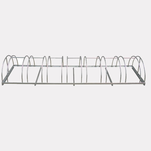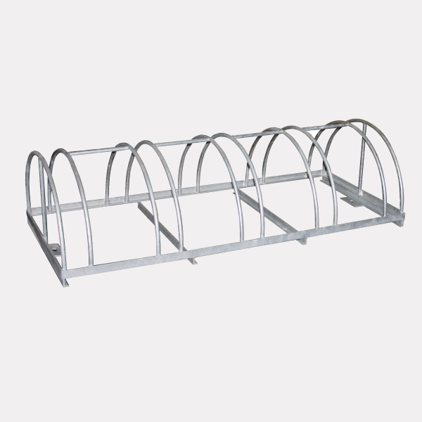 Stalak za bicikle Joker. Nosač za bicikl koji se sastoji od nosača prikladno oblikovanih šipki kruto zavarenih na osnovni okvir izrađen od “L” profila. Za veću krutost, šipke su vodoravno zavarene između jednog i drugog luka (preskačući prostor za bicikl). Osim toga, “L” profili su zavareni na donji dio kao nosači. Svi metalni dijelovi su vruće pocinčani prema UNI propisima. Može se pričvrstiti vijcima ili postaviti na tlo.