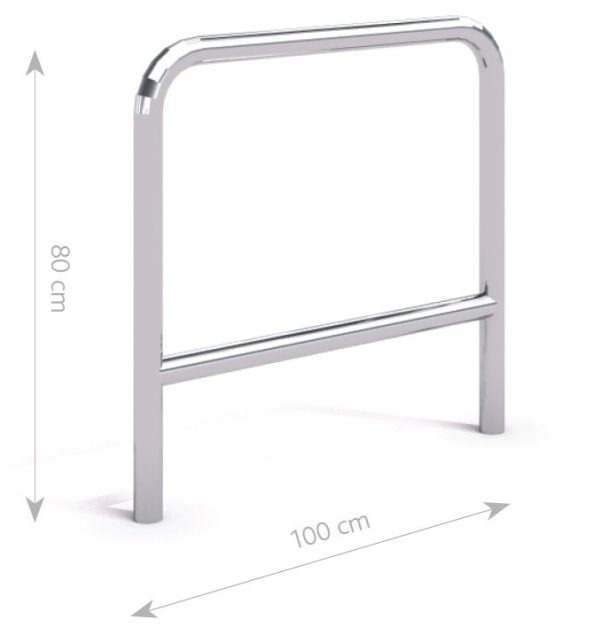 Nosač za bicikle od nehrđajućeg čelika za 2 bicikla. Nosač u obliku slova U s prečkom i pločom sa simbolom za parkiranje bicikla.