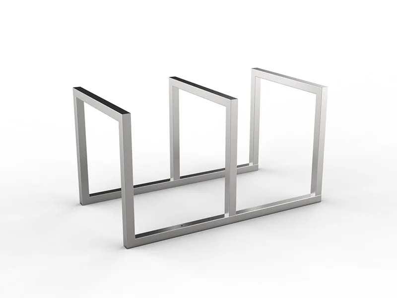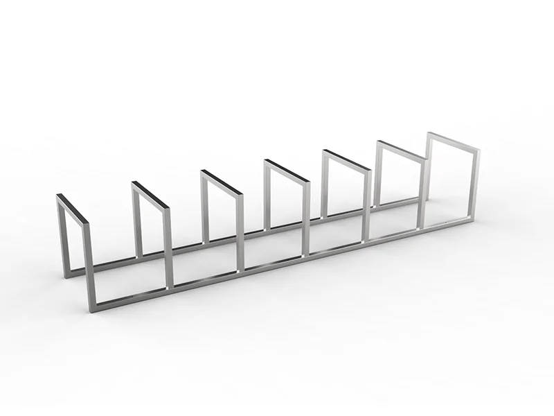 Stalak za bicikle ST.15.01 je model jednostavne forme i modernog dizajna. Proizvod će odlično funkcionirati u ograničenom prostoru, zbog male korisne širine stalka u odnosu na veliki broj pozicija. Konstrukcija može biti izrađena od nehrđajućeg čelika, ili crnog, pocinčanog i praškasto lakiranog čelika u bilo kojoj boji iz RAL palete. Stalak ima mogućnost prilagođavanja broja pozicija potrebama konkretnog prostora.