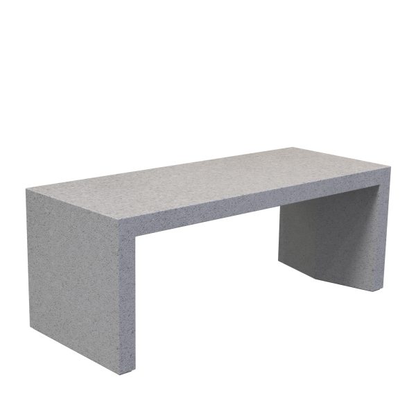 Betonski stol tipa Zeus, s unutarnjom elektrozavarenom mrežom za veću otpornost, s ogoljenom i vodootpornom teksturom, duljine 2000 mm, visine 770 mm i širine 800 mm, dostupan u sivoj i bijeloj boji.