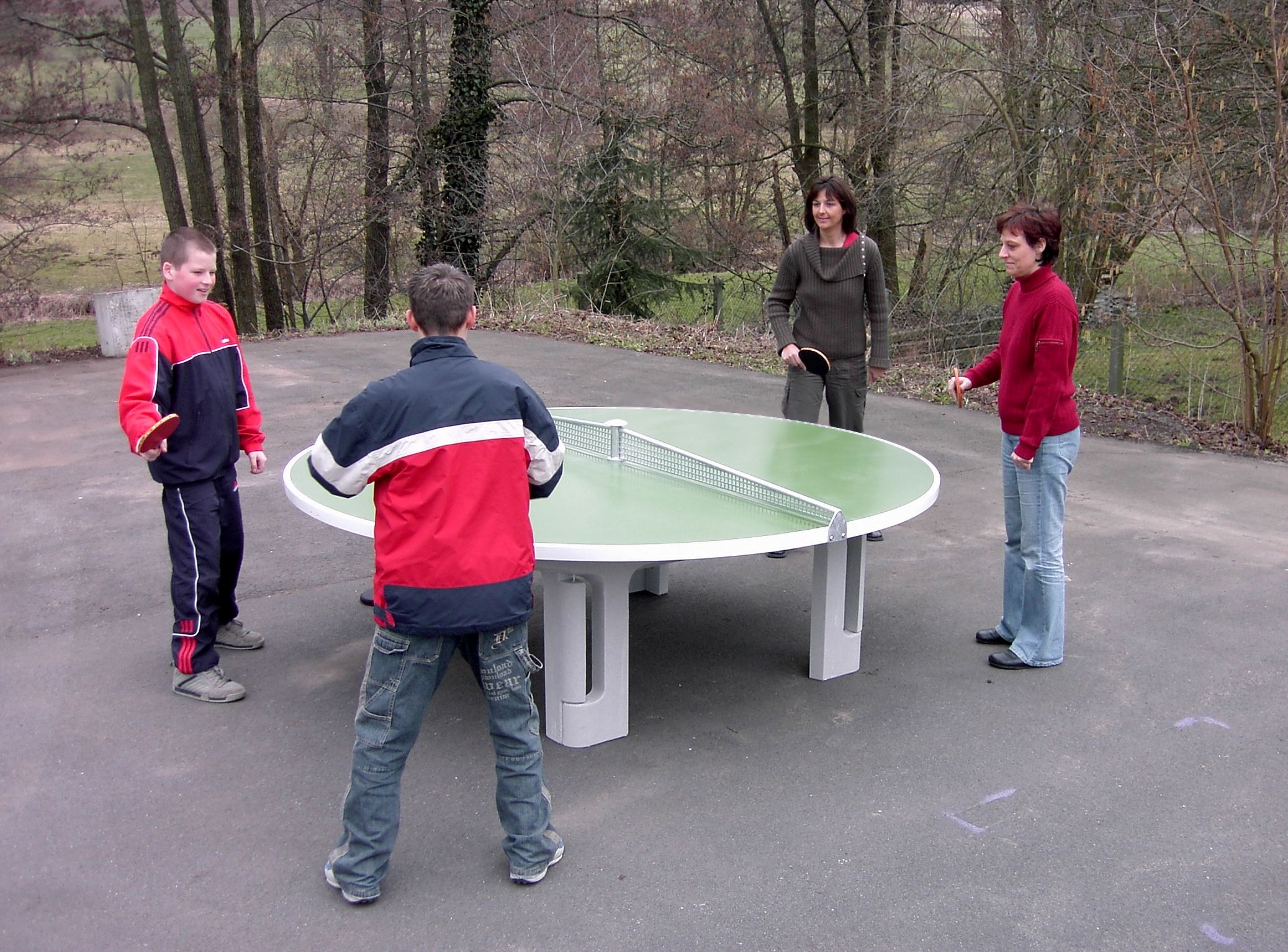 Vanjski stol za stolni tenis izrađen od polimer betona sa čeličnom bazom, idealan za cjelogodišnju vanjsku upotrebu.