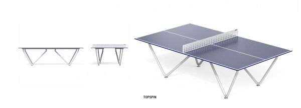 Stol za stolni tenis sastavljen je od para nosača u savijenoj okrugloj čeličnoj cijevi u obliku slova V i pravokutne čelične cijevi na koju su pričvršćene dvije razine koje čine polje za igru.