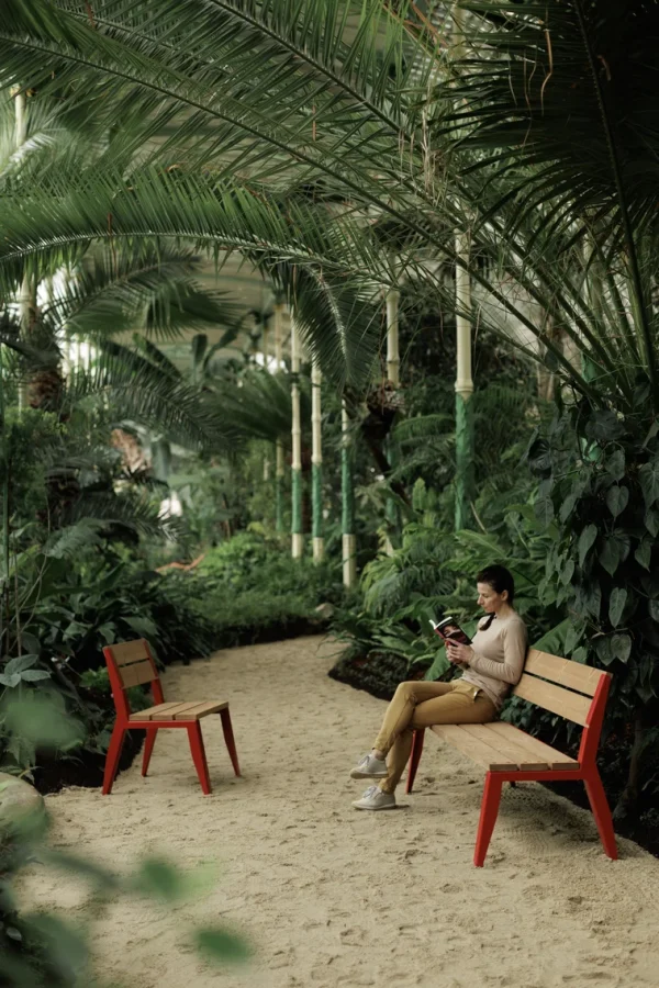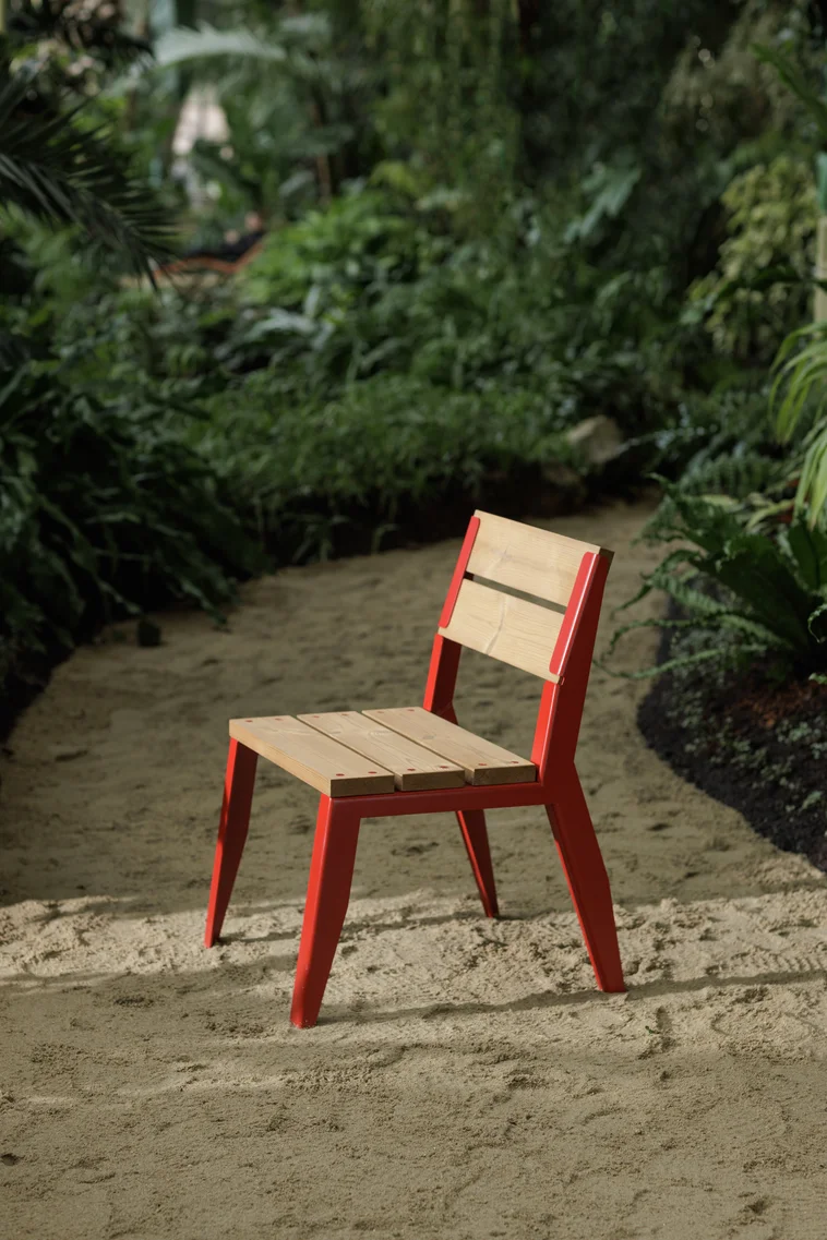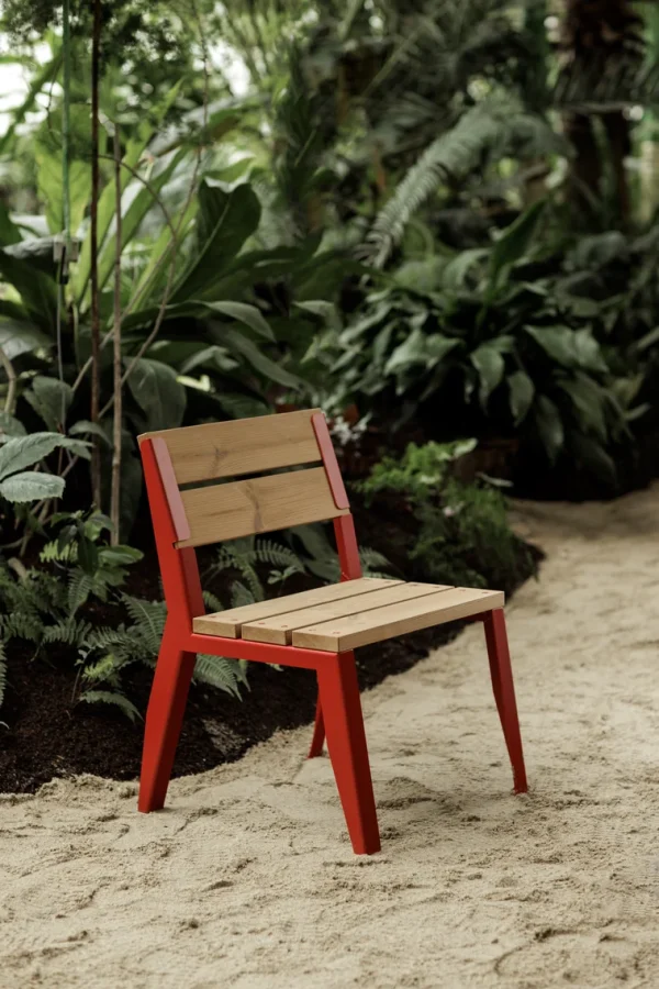 - Materijal: Čelična konstrukcija s antikorozivnim cinčanim premazom i praškastim premazom, sjedalo izrađeno od masivnih drvenih letvica