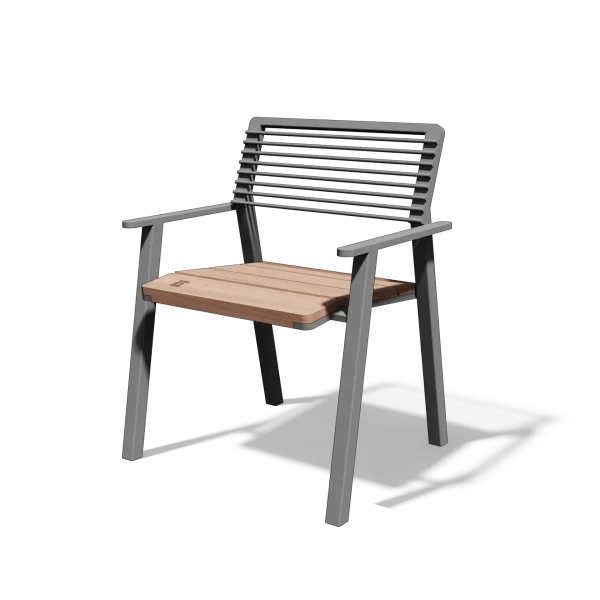- Materijal: Klupa s čeličnim nogama i naslonom od čeličnih šipki. Sjedalo od masivnih drvenih dasaka ojačano je čeličnim trakama.