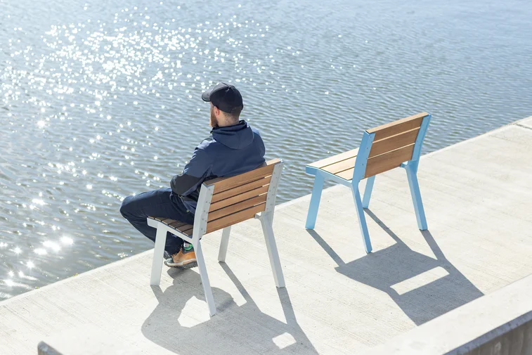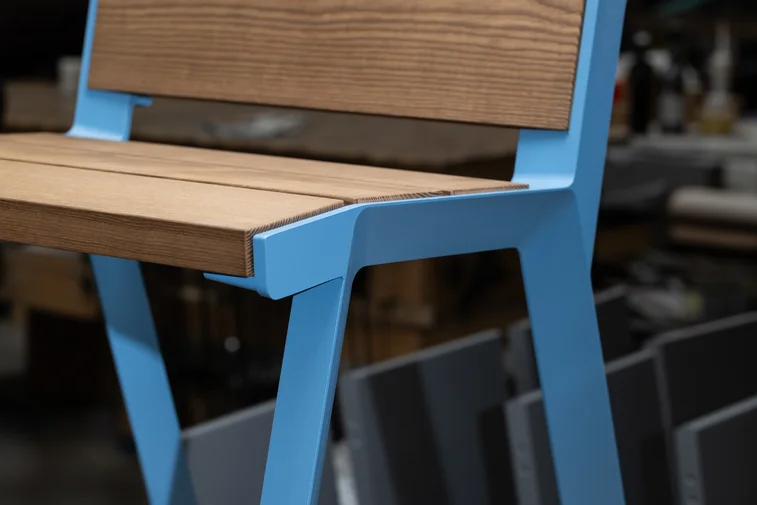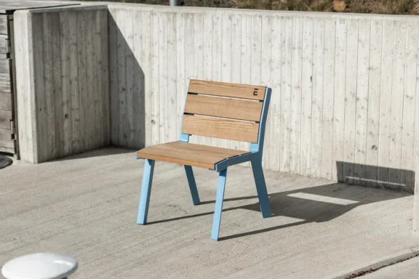 - Materijal: Konstrukcija od aluminijske legure s praškastim premazom, sjedalo i naslon izrađeni od punog drva